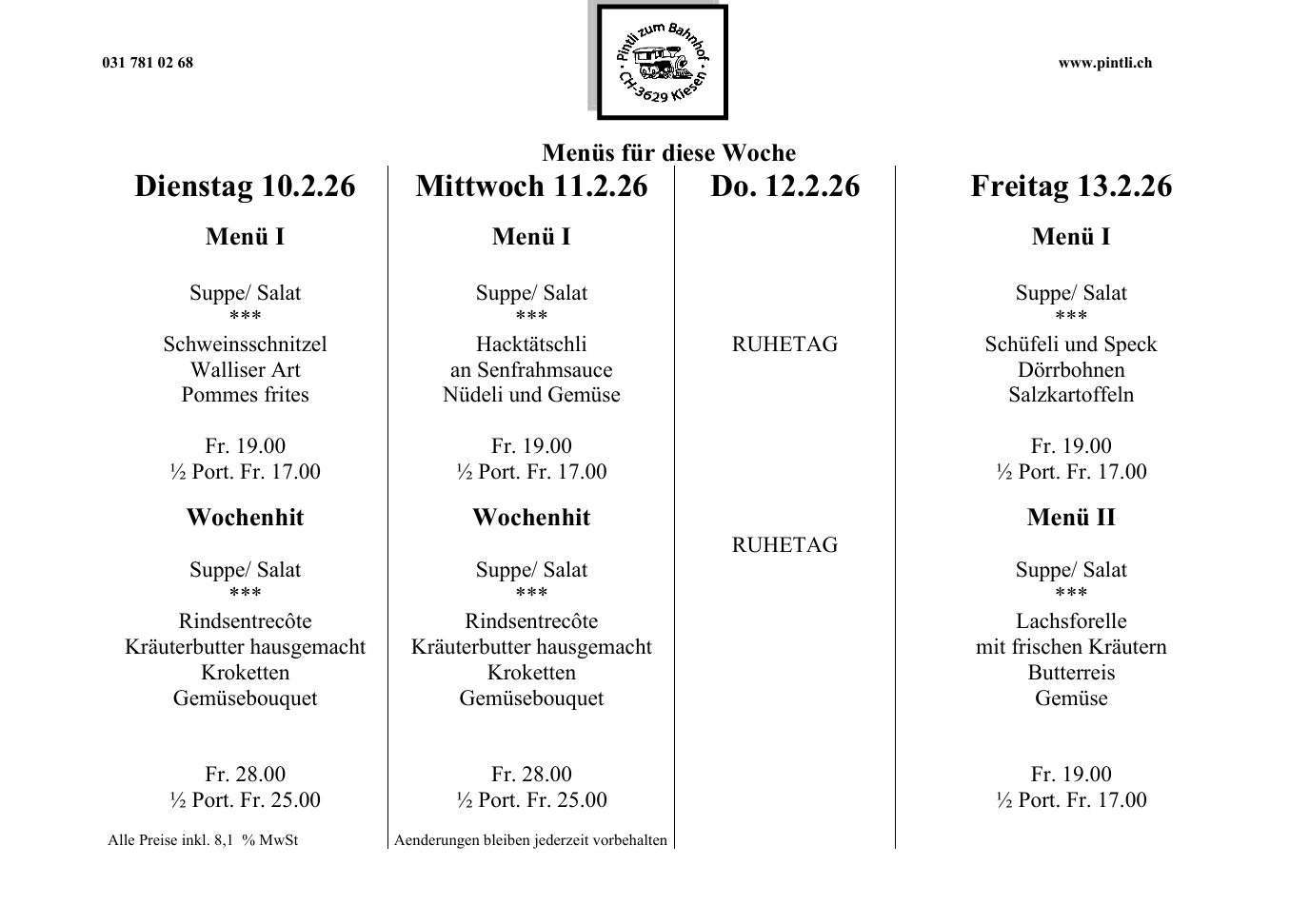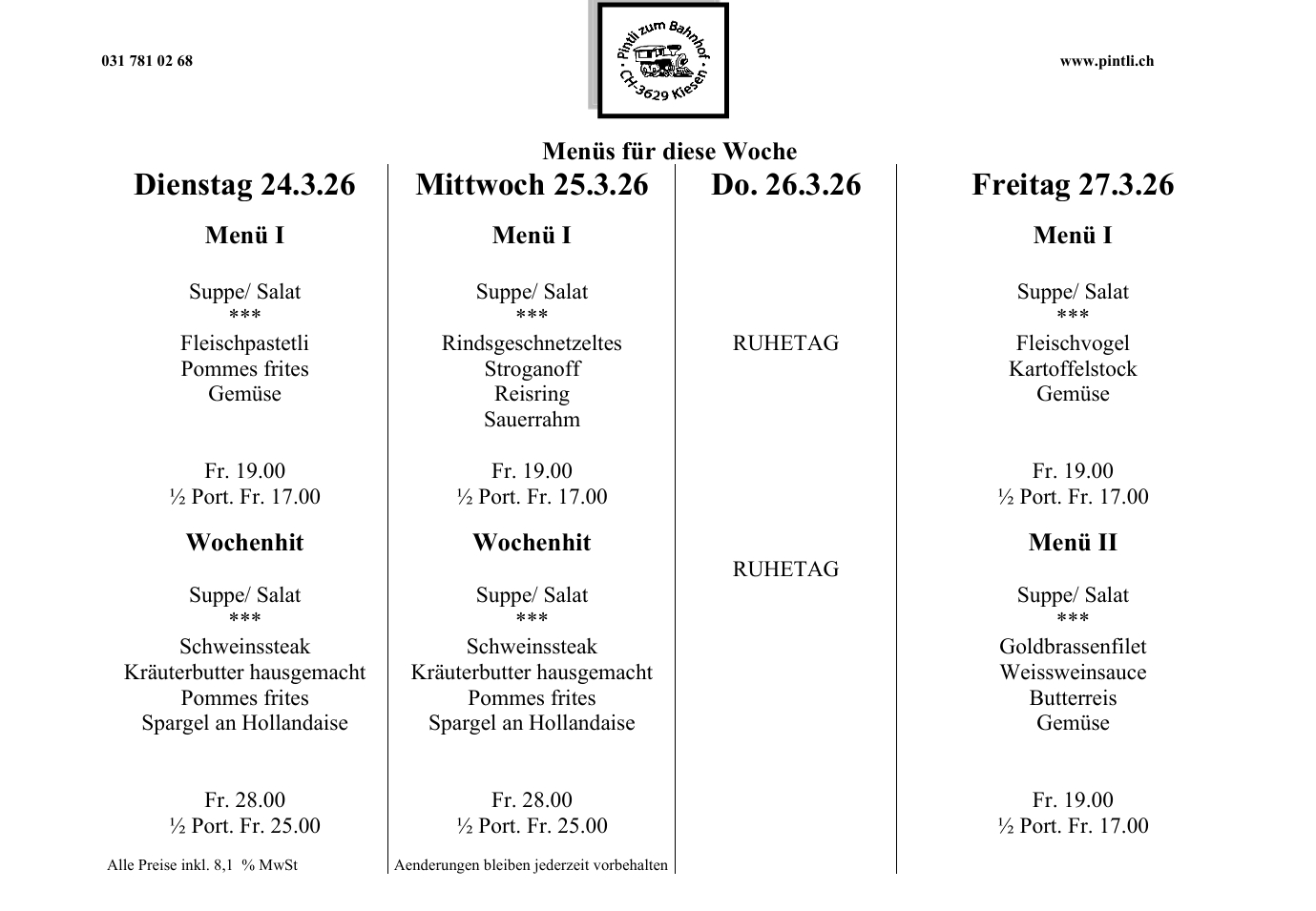 WOCHENHIT & MENUPLAN